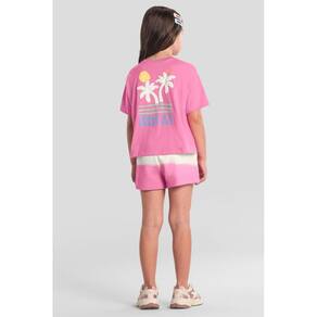 Deixe sua pequena cheia de estilo com o conjunto infantil da Brandili. A blusa cropped em meia malha tem gola redonda, mangas curtas e um divertido aplique termocolante, além de uma estampa tropical em puff nas costas. O shorts em moletinho com efeito degradê e cós elástico proporciona conforto e liberdade para brincar. Ideal para dias quentes, esse look é perfeito para renovar o guarda-roupa das meninas com charme e personalidade.