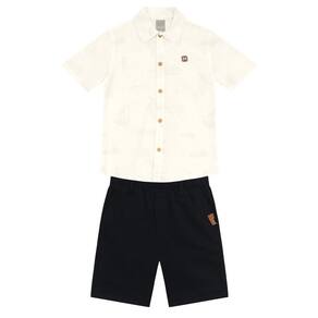 Deixe seu pequeno estiloso com o conjunto infantil da Mundi. A camiseta é feita em tecido de alfaiataria estampado, com mangas curtas e colarinho com abertura frontal por botões, garantindo um toque especial. A bermuda em sarja linho possui cós elástico, proporcionando conforto e liberdade de movimento. Ideal para ocasiões especiais ou passeios, esse look é perfeito para os meninos que adoram estar na moda com praticidade e charme.