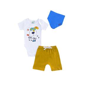 Nosso Conjunto Infantil Menino Body Branco Au Au + Bermuda Mostarda e Bandana - Lumagy é a coisa mais fofa desse mundo! O conjunto contém 1 body branco com estampa de um cachorrinho, onde conta com botões de pressão entre pernas que facilitam na hora da troca; 1 bermuda mostarda super estilosa; e para completar o look, acompanha também uma bandana muito linda! As cores casam entre si, fazendo o composê perfeito.