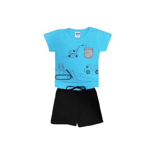 Nosso Conjunto de Camiseta Azul com Bermuda em Moletinho Preto é ideal para crianças que estão na fase da descoberta. Enquanto seu bebê estará lindo, ele se sentirá confortável para brincar e dormir seu soninho a hora que quiser. Possui divertida estampa de máquinas e bolsinho listrado.