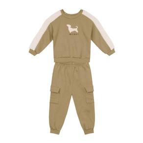 Conjunto infantil menino que une estilo e conforto. O blusão é confeccionado em moletom, com detalhes em pelo carneirinho nas mangas e no peito, garantindo um toque especial. A calça jogger, também em moletom, possui modelagem moderna, bolsos laterais e cós elástico para maior praticidade. Ideal para os primeiros passos, este conjunto é perfeito para as aventuras diárias dos pequenos. Invista na moda infantil de qualidade!