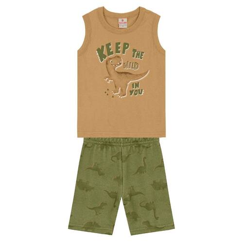 Transforme o visual do seu pequeno com o incrível conjunto infantil masculino da Brandili! Composto por uma regata em meia malha, apresenta uma divertida estampa em puff de dinossauro que vai encantar os meninos. A bermuda em moletinho, com estampa similar e cós elástico, garante conforto e liberdade de movimento. Ideal para os dias quentes, esse look versátil é perfeito para brincadeiras e passeios. Aposte nesse conjunto e veja seu bebê arrasar com estilo e diversão!
