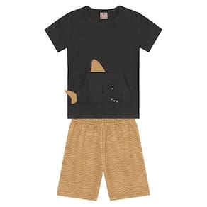 Deixe seu pequeno ainda mais estiloso com o conjunto infantil masculino da Brandili! Composto por uma camiseta de meia malha, apresenta um divertido bolso temático de tubarão, enriquecido com bordado e aplique interativo. A bermuda em moletinho, com cós em elástico, garante conforto e liberdade de movimento. Ideal para os dias de diversão, esse look é perfeito para aventuras e brincadeiras. Invista na moda que combina estilo e praticidade para os bebês!