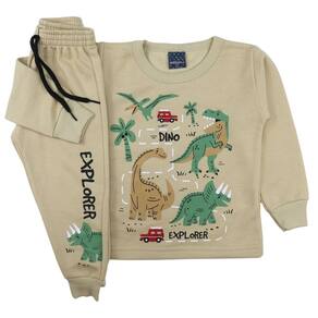 Conjunto Infantil Menino Dino em Moletom Flanelado Inverno - Bege - 1