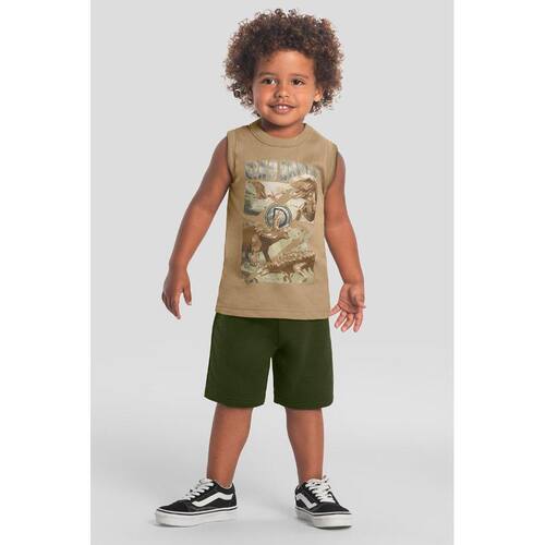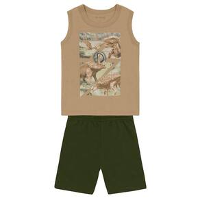 Prepare seu pequeno para aventuras incríveis com o conjunto infantil da Brandili! Composto por uma regata em meia malha com estampa metalizada de dinossauro, este conjunto é perfeito para os pequenos exploradores. A bermuda em moletinho com cós elástico garante conforto e liberdade de movimentos. Ideal para os dias quentes, esse look combina estilo e praticidade. Invista na moda infantil e faça seu bebê brilhar com muito charme!