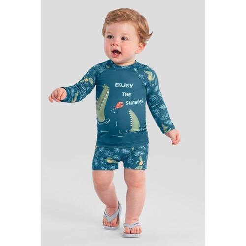 Prepare seu pequeno para os dias ensolarados com o incrível conjunto infantil da Brandili! Confeccionado em malha UV poliéster, ele conta com uma camiseta de manga longa adorável, estampada com um divertido jacaré, e uma sunga boxer que complementa o visual. Ideal para garantir conforto e proteção durante as brincadeiras ao ar livre, esse conjunto é perfeito para os bebês que adoram explorar. Combine com um chapéu e sandálias para um look super estiloso!