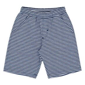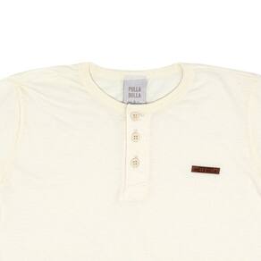 Descontraído e arrumadinho, o look ideal para os meninos! Camiseta meia malha na cor off white com gola reforçada e abertura com botões, possuí etiqueta termocolante. Já a bermuda confeccionada em tecido eco listrado na cor marinho.