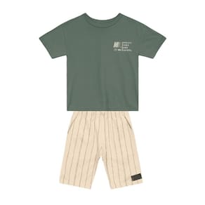 Deixe seu pequeno ainda mais estiloso com o incrível conjunto infantil masculino da Mundi! Composto por uma camiseta overshirt em meia malha, que traz uma estampa lateral moderna, e uma bermuda em moletinho listrada com cós elástico, esse look é perfeito para os dias de diversão. Confortável e prático, ele garante liberdade de movimento para as aventuras diárias. Combine com tênis e um boné para um visual despojado e cheio de atitude. Transforme o guarda-roupa do seu garoto com esse conjunto que une estilo e conforto!