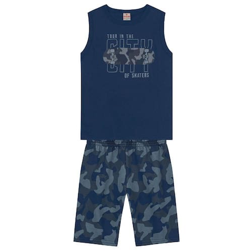 Prepare seu pequeno para aventuras cheias de estilo com o conjunto infantil masculino da Brandili! Composto por uma regata de meia malha com estampa puff de skate, que traz um toque divertido, e uma bermuda em moletinho com estampa camuflada e cós elástico, esse conjunto é perfeito para os dias quentes. Além de confortável, ele garante liberdade de movimento para brincar à vontade. Combine com tênis e um boné para um look descolado e cheio de atitude!
