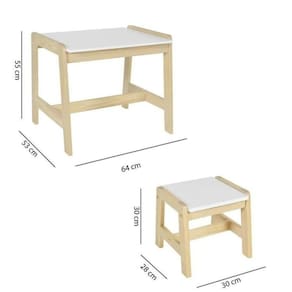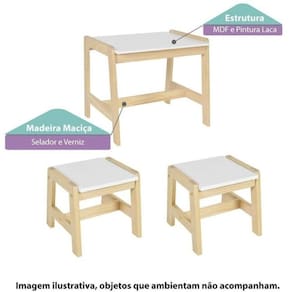 Ideal para momentos de criatividade, estudo e diversão, este conjunto foi especialmente pensado para proporcionar à criança um espaço seguro e acolhedor para desenhar, brincar e realizar suas atividades escolares.Produzidos em madeira maciça de pinus, os móveis recebem acabamento em verniz, que preserva a beleza natural da madeira e garante durabilidade. Já a versão na cor branca é feita em MDF com pintura em laca resistente a riscos, oferecendo um toque de elegância e sofisticação.Este conjunto é a opção perfeita para quem busca móveis infantis com design diferenciado, acabamento refinado e longa vida útil. Em um momento em que a sustentabilidade é prioridade, os móveis de madeira maciça se destacam como uma alternativa ecológica e durável, trazendo ainda exclusividade e requinte à decoração do quarto infantil. Acabamento da Cadeira/Banco: Pintura UV Acompanha Manual de Instalação: Sim Almofada do encosto: Não Possui Altura do Conjunto: 55 cm Ambiente: null Ambiente Principal: Quarto Infantil Cadeira/Banco estofada: Não Cadeira/Banco suporta até: 30 Cor: Branco / Natural Cor do Produto: Branco / Natural Escala de Brilho: Semi-Brilho Informação Complementar: 1x Mesa Infantil Castelo Branco/Natural Largura: 64 cm Altura: 55 cm Peso: 5,11 kg Profundidade: 56 cm Necessita Montagem: Sim
