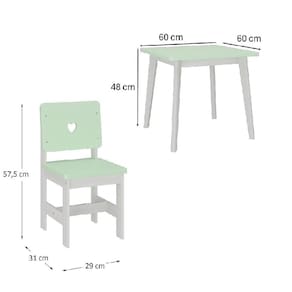 Combinada com a Cadeira Infantil Sofia, o conjunto transforma qualquer ambiente em um espaço mais alegre e acolhedor. As cadeiras possuem estrutura em madeira maciça de pinus com acabamento em verniz, que valoriza o tom natural da madeira. As partes em MDF recebem pintura laqueada com brilho fosco, unindo estilo e resistência. Acabamento da Cadeira/Banco: Verniz Acabamento da Mesa: Verniz Acompanha Manual de Instalação: Sim Ambiente Principal: Quarto Infantil Cadeira/Banco estofada: Não Cadeira/Banco suporta até: 30 kg codigo_ean: 7900288203793 Complexidade da Montagem: Baixa: pode ser montado por uma pessoa sozinha Configuração do Conjunto: Mesa com Cadeiras Cor: Branco / Verde Cor do Produto: Branco / Verde Design da Base: Padrão Enchimento do Encosto: MDF Escala de Brilho: Semi-Brilho Espessura do Tampo: 15 mm Estrutura do Assento: MDF Estrutura do Encosto: MDF Formato do Tampo: Quadrado Itens Inclusos: 1 Mesa, 2 Cadeiras, Kit Ferragens e Manual de Montagem Linha ou Coleção: Sofia Manual de Montagem e Instalação: https://product-hub-prd.madeiramadeira.com.br/671005244/documents/ba4da1dc-edbd-4ab1-931b-3823fb429f9b308883557441753210868526.pdf Marca: Empório Paraíso Material da Base da Mesa: MDF Material da Estrutura da Cadeira: Madeira Maciça Material do Tampo: MDF Material Principal: Madeira Maciça Material Principal das Cadeiras/Bancos: Madeira Maciça Medida da Cadeira/Banco (A x L x P): 57,5X29X31 Medida da Mesa (A x L x P): 48X60X60 Medida do Tampo (L x C x E): 60X60X1,5 Mesa Dobrável: Não Mesa Extensível: Não Mesa suporta até: 15 kg Necessita Montagem: Sim Origem do Produto: Nacional Peso da Cadeira/Banco: 2,9 kg Peso da Mesa: 6 kg Possui Apoio para Braços: Não Possui Apoio Para os Pés: Não Possui Prateleiras: Não Possui Rodízio: Não Possui Suporte Giratório: Não Possui Vidro: Não Quantidade de Cadeiras: 2 Recomendações de Uso, Manutenção e Limpeza: Limpar Com Pano Seco Sistema de Montagem: Parafusos Tipo de Assento: Fixo Tipo de Encosto: Fixo Marca: Não Informado