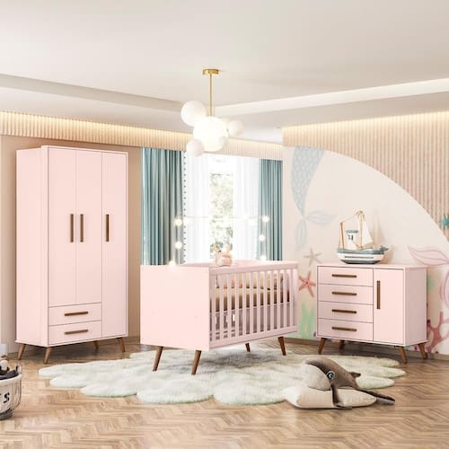 O Guarda Roupa com 3 portas e 2 gavetas foi pensado para quem precisa de um móvel espaçoso para o quarto do bebê.