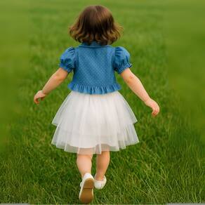 Encante-se com a delicadeza deste conjunto infantil composto por vestido Branco em tule com laço azul e casaquinho jeans leve com estampa de borboletas. Um look encantador para ocasiões especiais, festas ou passeios, garantindo estilo e conforto para sua pequena.