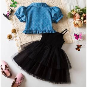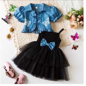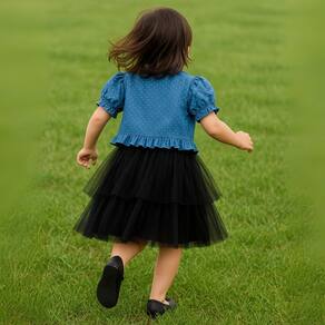 Encante-se com a delicadeza deste conjunto infantil composto por vestido Preto em tule com laço azul e casaquinho jeans leve com estampa de borboletas. Um look encantador para ocasiões especiais, festas ou passeios, garantindo estilo e conforto para sua pequena.