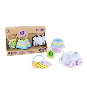 O presente perfeito para o bebê! Este conjunto inclui os Brinquedos Verdes, Primeiras Chaves, Empilhamento de Copos e Elefante sobre Rodas. As Primeiras Chaves super seguras apresentam 4 teclas e encantos coloridos e de formato único. Eles são leves e fáceis de segurar por mãozinhas. Os Copos de Empilhamento incluem 6 copos graduados e numerados para a hora do jogo ou do banho. Eles podem ser empilhados em uma torre ou aninhados para facilitar o armazenamento. O Elephant-on-Wheels é um brinquedo de primeiro impulso perfeito com uma alça fácil de agarrar. Fabricado nos EUA a partir de plástico 100% reciclado sem BPA, ftalatos ou PVC. Cofre para máquina de lavar louça. Embalado com materiais reciclados e recicláveis impressos com tintas de soja.