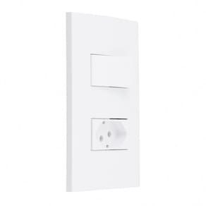 Interruptor simples de 10 amperes + 1 Tomada 20 amperes aplicável em redes de até 250 Volts com finalidade de ligar, desligar e alimentar componentes elétricos residenciais. Produzido em termoplástico de alta resistência e antichamas. Com placas maiores e estrutura inspirada na arquitetura Bauhaus, a linha Inova Pro é a opção perfeita para quem deseja ambientes modernos e limpos.