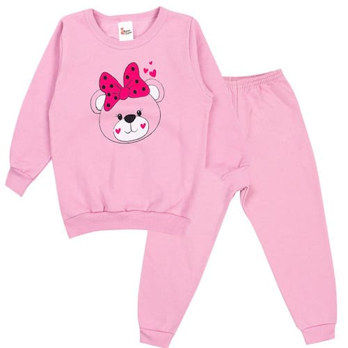 Conjunto Inverno Moletom de Bebê Menina Estampado - 1 ano - Rosa Claro