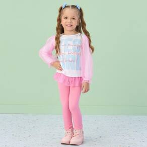 Conjunto infantil com blusa manga longa sobreposta em tule, e calça legging na cor rosa, mega estiloso, moderno e cheio de personalidade!