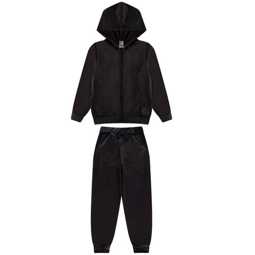 Conjunto Jaqueta Com Capuz Infantil + Calça Com Bolso - Preto - 10