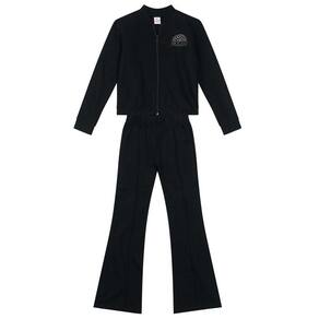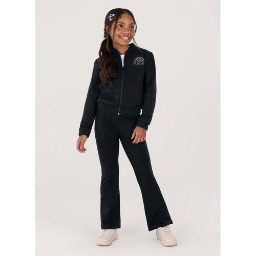 Conjunto infantil menina composto por jaqueta cropped e calça flare, muito estilo e personalidade para sua pequena. A jaqueta confeccionada em moletom com pelúcia interna conta com gola padre, mangas longas, punhos e barras ajustados, aplique strass e fechamento frontal por zíper, já a calça possui elástico no cós, cor lisa e costura frontal. Aposte, a pequena vai amar! Trad:. Mágico