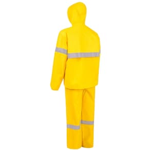 - Impermeabilidade total: costuras seladas termicamente evitam a penetração de água. - Alta durabilidade: nylon reforçado e overloque de cinco fios resistem ao desgaste. - Visibilidade ampliada: faixas refletivas de 50 mm conforme a NBR 15292. - Ajuste prático: capuz fixo e calça com elástico e cordão.
