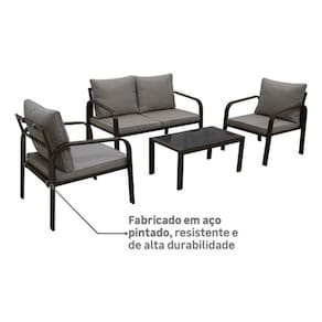 Perfeito para areas externas cobertas e secas, este conjunto de moveis para jardim e ideal para relaxar, socializar ou simplesmente desfrutar do ar livre. Por favor, note que este produto nao e recomendado para regioes com maresia e/ou contato direto com agua. O conjunto chega desmontado, com uma complexidade de montagem media, e possui uma garantia do fabricante de 3 anos. Transforme o seu jardim num oasis de conforto e estilo com o Conjunto de Moveis para Jardim Sabrina.