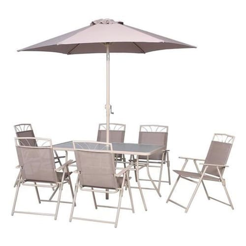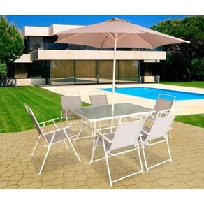 Conjunto Jardim 8 Pecas Cadeira Mesa Ombrelone Conjunto para Jantar Santa Lucia 8 Pecas Taupe e perfeito para quem busca um ambiente elegante e charmoso para reunir familia e amigos. Feito com materiais de alta qualidade, este conjunto e composto por 6 cadeiras confortaveis, 1 mesa espacosa e 1 guarda-sol para proteger do sol. Com estrutura de aco resistente e superficie em textileno, este conjunto e duravel e facil de limpar. Alem disso, a mesa possui tampo de vidro e as cadeiras sao dobraveis, facilitando o armazenamento quando nao estiverem em uso. Com capacidade para 8 pessoas, este conjunto e ideal para uso domestico e garantira momentos especiais ao ar livre. A cor Taupe traz um toque sofisticado ao ambiente, enquanto as dimensoes generosas garantem conforto para todos os convidados. e com de 3 meses, este conjunto e a escolha perfeita para quem valoriza qualidade e design. Marca: Não Informado Ean: 7909659096620