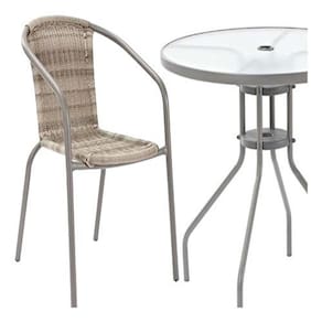 "Transforme seu espaço externo em um ambiente aconchegante com o Conjunto Jardim Ratan da linha Elia da Naterial. Composto por uma mesa redonda de vidro e duas cadeiras elegantes de rattan sintético, este conjunto é perfeito para pequenos espaços como varandas, jardins ou áreas externas cobertas.