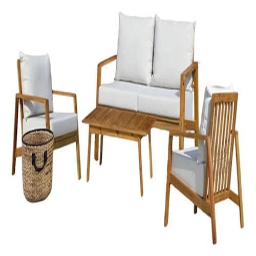 """Visualize sua varanda com a calidez e a simplicidade do Conjunto Jardim Varanda 4 Peças Madeira com Almofadas para 4 Pessoas. Feche os olhos e imagine como este conjunto se torna o centro de suas reuniões ao ar livre.