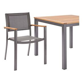 Fabricado com a combinacao harmoniosa de aluminio e madeira, o conjunto Oris Naterial oferece durabilidade excepcional e um visual sofisticado. O aluminio, conhecido por sua leveza e resistencia a corrosao, garante a longevidade da estrutura, enquanto a madeira traz um toque de calor e beleza natural ao design. As cores cinza e marrom se integram perfeitamente a qualquer paisagem, adicionando um charme unico ao seu jardim.