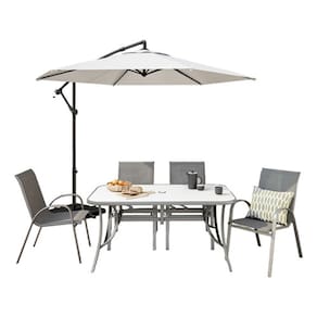 Este elegante conjunto de moveis para jardim, composto por uma mesa e quatro cadeiras, e ideal para complementar espacos externos cobertos. Fabricado em aco de alta qualidade, apresenta um acabamento na cor cinza que confere um visual moderno e discreto. O tampo da mesa e de vidro, proporcionando um toque de elegancia e facilidade na limpeza.