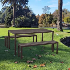 Resumo Tecnico: Design: Moderno e elegante, tonalidade cafe. Composicao: 3 pecas. Material: Resistente as intemperies. Uso: Ambientes externos, terracos. Beneficios: Durabilidade, praticidade, conforto, otimizacao de espaco, sofisticacao. Marca: Não Informado