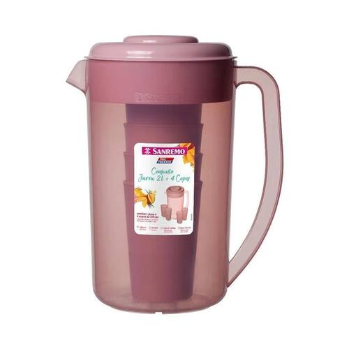 Especificações Técnicas: - Conjunto composto por 1 jarra água Sanremo de 2 litros e 4 copos plástico Sanremo. - Jarra multiuso com design moderno. - Pega que facilita o manuseio. - Pode ser utilizado no freezer, no micro-ondas e na máquina de lavar. - Produto atóxico e livre de BPA. - Capacidade da jarra: 2 litros.
