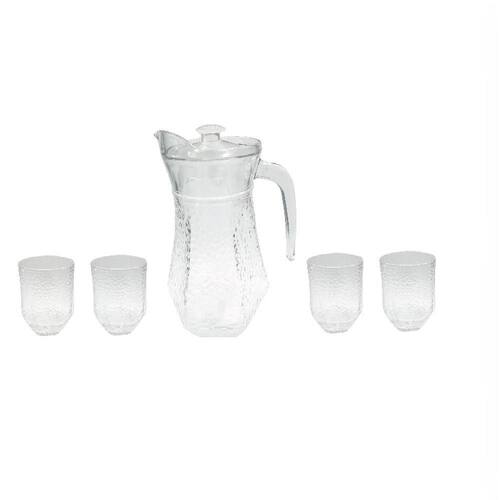 Fabricado em vidro resistente, este conjunto é ideal para o uso diário, garantindo durabilidade e um visual sofisticado. A jarra tem capacidade de 1.5 litros, sendo ideal para servir sucos, chá gelado, água e outras bebidas refrescantes. Já os 4 copos que acompanham o conjunto possuem o mesmo design moderno, proporcionando uma experiência completa para você e seus convidados.