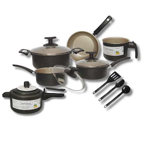 Nosso conjunto é testado, aprovado e com selo do inmetro garantindo 100% de qualidade, não quebra, não derrete a pintura, conjunto super forte e resistente. Acompanha também 3 talheres especiais para nao riscar seu novo conjunto de panelas e fazê-los durar por muitos anos. Jogo de Panelas antiaderente 09 Peças Tampa De Vidro. Composição: 1 panela 18 cm tampa de vidro 1 panela 16 cm tampa de vidro 1 Caçarola 18cm tampa de vidro 1 Frigideira reta 18 cm 1 Fervedor 14cm 1 panela 2 L 1 conjunto de talheres que podem variar quanto ao modelo e cor. Alumínio revestido com antiaderente Teflon de qualidade contra defeito de fabricação Marca: Não Informado