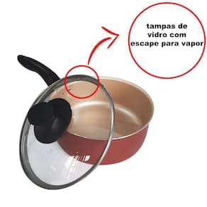 Conjunto Jogo De Panelas 5 Peças Teflon Antiaderente Cereja Jogo conjunto de panelas 5 peças com teflon antiaderente - tampa de vidro
