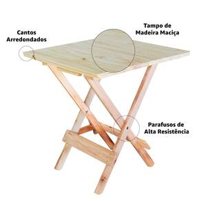 O tampo é confeccionado com madeira maciça, que é uma das madeiras mais resistente do mercado. Os pés são produzidos com madeira mista, sendo elas Pinus ou Eucalipto, que proporcionam maior resistência e durabilidade ao produto.