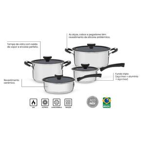 Cacarola de inox, Caçarola de inox, Conjunto de panela, Conjunto de panelas, Conjuntos de panelas, Jogo de panela, Jogo de panelas, Jogos de panelas, Kit de panelas, Kit para cozinha, Panela aço inox, Panela de aço inox, Panela de inox, Panela inox, Solar, Revestimento Interno Cerâmico.
