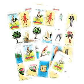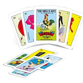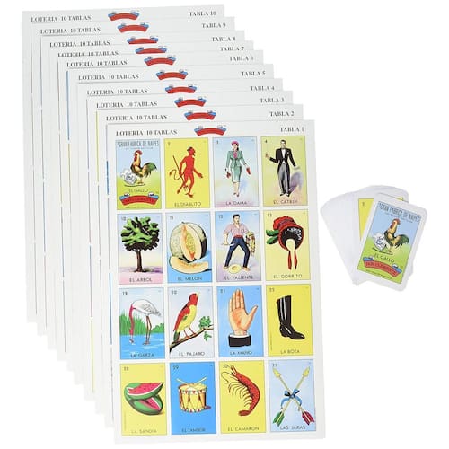 Pacote de 2 Don Clemente Conjunto de Loteria Jumbo Mexicano, 20 Tabuleiros Grandes e 2 Decks de Cartas FEITO NO MÉXICO: O Bingo mexicano autêntico e autêntico TAMANHO MAIOR TAMANHO: as cartas são tamanho jumbo. As cartas de pontuação são aproximadamente 23,5 x 35,5 cm e as cartas de baralho são do tamanho de um baralho normal. Mais diversão e jogadores: total de 20 tabuleiros e 2 baralhos de 54 cartas. PLACA: Eles são feitos de papelão resistente. Jogo clássico: a loteria mexicana é um maravilhoso jogo de cartas tradicional semelhante ao bingo. Loteria também é uma forma de arte popular, já que cada uma das cartas coloridas tem uma imagem de figuras mexicanas populares, incluindo "el catrin" (o cavalheiro), "el borracho" (o bêbado), "la calavera" (o esqueleto), "la chalupa" (o barco de flores), etc. Muito divertido para toda a família. O autêntico jogo de loteria mexicana. Conjunto completo para até 20 jogadores inclui 2 baralhos completos de 54 cartas e 20 tabuleiros. Os tabuleiros de jogo são impressos em papel semi-brilhante espesso, o baralho de cartas é impresso em papel fosco grosso. Impresso e embalado no México. A loteria mexicana é um maravilhoso jogo de cartas tradicional semelhante ao bingo. Loteria também é uma forma de arte popular, já que cada uma das cartas coloridas tem uma imagem de figuras mexicanas populares, incluindo "el catrin" (o cavalheiro), "el borracho" (o bêbado), "la calavera" (o esqueleto), "la chalupa" (o barco de flores), etc. Muito divertido para toda a família. - Feito no México: o bingo mexicano autêntico e autêntico - Tamanho maior: os cartões são tamanho jumbo. As cartas de pontuação são aproximadamente 23,5 x 35,5 cm e as cartas de baralho são do tamanho de um baralho normal. - Mais diversão e jogadores: total de 20 tabuleiros e 2 baralhos de 54 cartas. - PLACA: Eles são feitos de papelão resistente. - Jogo clássico: a loteria mexicana é um maravilhoso jogo de cartas tradicional semelhante ao bingo. Loteria também é uma forma de arte popular, já que cada uma das cartas coloridas tem uma imagem de figuras mexicanas populares, incluindo "el catrin" (o cavalheiro), "el borracho" (o bêbado), "la calavera" (o esqueleto), "la chalupa" (o barco de flores), etc. Muito divertido para toda a família.