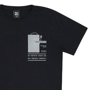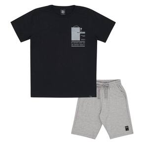 Conjunto ideal para os meninos curtirem o dia com os amigos! Camiseta meia malha na cor preto, gola reforçada e estampa frontal com escrita traduzida "vá mais longe a cada dia e se supere. Pista brasileira. Verifique. Pronto, vá!" e bermuda preta com etiqueta termocolante e elástico no cós para maior conforto e movimentação.