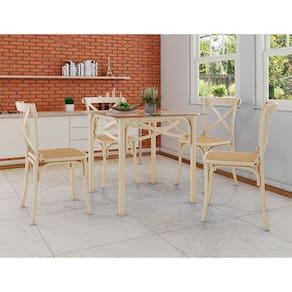 Conjunto Katrina Off White 4 Cadeiras Tampo De Madeira Quadrado 90 Cm AsturiasPor que o Conjunto de Mesa de Jantar com Cadeiras Katrina?Deixe sua sala de jantar ou cozinha ainda mais chique com este lindo conjunto de Conjunto de Mesa de Jantar com Cadeiras Katrina! Com design moderno e elegante, sua casa vai ganhar móveis de alta qualidade e que deixarão a sua decoração ainda mais linda! Com 4 cadeiras com a estrutura em aço e o assento em espuma D14, revestimento em Couro Artificial, deixando as peças ainda mais confortáveis. E para completar o conjunto, a mesa possui o tampo em madeira, um luxo! Lindo, né? Leva!Informações técnicas:Conteúdo da Embalagem: 01 Mesa e 04 cadeiras.Modelo do Conjunto: KatrinaCor predominante do Conjunto: Off White Instruções/Cuidados: Limpar com pano levemente umedecido com águaMaterial: Estrutura em aço com Pintura E-Pox // Tampo em madeira // Assento em espuma D14 // Revestimento em corinoNecessita Montagem? Sim, sugerimos a contratação do nosso serviço de montagem (para os CEPs em que o serviço está disponível) ou de algum profissional experiente de sua preferência.Descrição do Tamanho (Mesa):Altura: 76 cmLargura: 90 cmProfundidade: 90 cmDescrição do Tamanho (Cadeira):Altura: 90cmLargura: 48cmProfundidade: 46cmConjunto Katrina Off White 4 Cadeiras Tampo de Madeira Quadrado 90 Cm Asturias