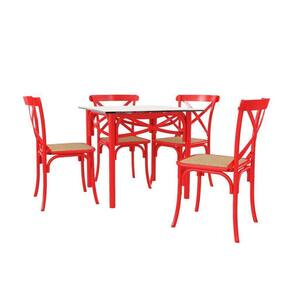 Conjunto Katrina Vermelho 4 Cadeiras Tampo De Madeira Quadrado 90 Cm New Green - Cor: Branco