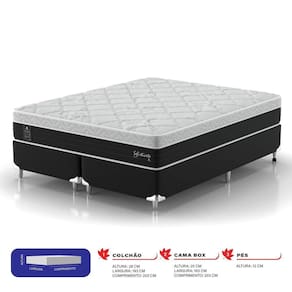 Colchão com Estrutura interna composta de molas ensacadas invidualmente, Espuma visco elástica, espuma puliuretano densidade 26kg/m3, EPS - Poliestireno Expandido e feltro resinado. Faixa lateral no tecido maquinetado geométrico, tampo e europillow na malha 180g e fundo do produto TNT 100g anti derrapante. Cor da faixa grafite, tampo e europillow branco com estampa cinza, fundo preto. Box com madeira pinus e eucalipito, Faixa lateral no tecido maquinetado geométrico grafite, TNT 70g preto na parte de cima e na parte de baixo. Abertura para Ventilação: Não Acompanha Cama Auxiliar: Não Acompanha Colchão: Sim Altura da Base Box (Sem o Colchão): 25 Altura do Colchão (Sem a Base Box): 28 Ambiente Principal: Quarto Antiácaro: Sim Antialérgico: Sim Antifungo: Sim Cantoneiras: Sim Cor: Cinza Cor do Produto: Cinza Informações Complementares: Colchão com malha 180g e estampa floral, esta malha além de ter um toque macio e agradável, proporciona maior conforto e possui grande segurança contra eventuais desfiações. Sua estrutura é composta por espuma poliuretano densidade 26kg/m2 que dá mais con Itens Inclusos: 1 Colchão, 2 Box Linha ou Coleção: Linha Manual de Montagem e Instalação: https://product-hub-prd.madeiramadeira.com.br/871155/documents/01cacfa4-81b3-401f-9899-fce84b433f81manualdemontagemdoboxcasal.pdf Material da Estrutura: Pinus Material dos Pés: Plástico Necessita Montagem: Sim Nível de Conforto: Intermediário Origem do Produto: Nacional Peso: 62.3 Pillow: Pillow Euro Possui Baú: Não Possui Pillow: Sim Precisa virar: Não Recomendações de Uso, Manutenção e Limpeza: Seguir manual de instruções. Revestimento: Malha Revestimento da Base Box: Acabamento com linhas poliester Tamanho: King Tamanho de Colchão: King Tipo do Colchão: Mola