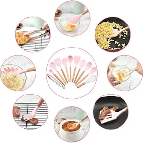 Conjunto de kit 11 peças de utensílios de cozinha de silicone não arranha a panela, fácil de limpar utensílios cozinha