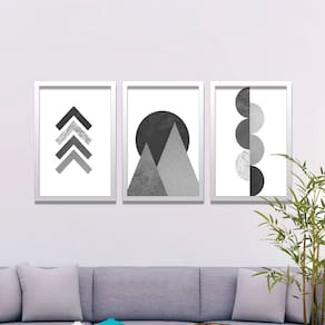 Conjunto Kit 3 Quadros Geometria Artística Moldura Branca 3 Quadros 45x33cm cada Tamanho Montado 45x103cm A melhor qualidade em Molduras do Mercado Única com Moldura de madeira Pinus 100% lisa, livre de imperfeições com superfície laqueada . Não é MDF. Quadros com vidro e pendurador. Os quadros vão Super Embalados garantindo que cheguem intactos.