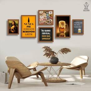 Essa composição possui 6 quadros, sendo eles nos seguintes tamanhos: 2 quadros 20x30 cm (20 cm de largura e 30 cm de altura) 2 quadros 20x20 cm (20 cm de largura e 20 cm de altura) 2 quadros 15x20 cm (15 cm de largura e 20 cm de altura)
