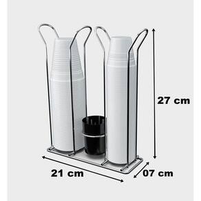 Conjunto Organizador para Copos Descartáveis Stolf em Aço CromadoPensando em você a Stolf desenvolveu este produto para ajudar na organização e design do seu ambiente. Com este organizador seu cantinho do café ficará organizado e decorado- Ideal para: Casa, Escritórios, Consultórios, Empresas- Material resistente e design moderno Material:- Polipropileno;- Aço cromado: Com uma camada extra de protetivo aplicado sobre a peça que proporciona cinco vezes mais durabilidade e resistência à corrosão.Cor: Cromado e PretoCapacidade: 50 copos de 50/80ml; 40 copos de 180/200mlSuporta: Copos de 50/80ml e 180/200mlDimensões: 20,5cm x 7cm x 27cm (Comp. x Larg. x Alt.)Pote redondo: 6cm (Diâmetro) x 7cm (Altura)Não lavar com materiais abrasivosProduto novo e original Stolf, acompanha nota fiscal.