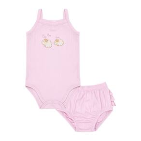 Básico e fofinho, não há quem resista ao conjunto ovelha! O conjunto conta com um body e uma calcinha super confortáveis e fresquinhos em tecido malha canelada na cor lavanda, o body possui aplique bordado de duas ovelhinhas fofinhas na parte da frente e a calinha possuí detalhes de frufru na parte de trás. Um charme para a diversão na casa da vovó ser garantida!