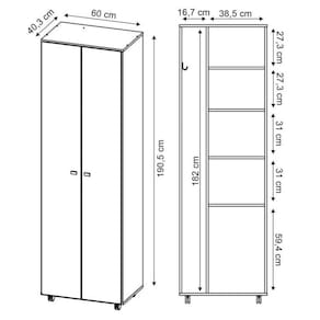1x Armário AM3101 Branco Largura: 60 cm Altura: 190 cm Profundidade: 40,3 cm