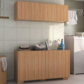 Transforme sua lavanderia num ambiente funcional e elegante com o Conjunto Lavanderia Multiuso Armário Aéreo e Balcão 4 Portas Multimóveis MP5054. Fabricado em MDP (15mm) com acabamento acetinado (cerca de 20% de brilho), garante durabilidade e resistência. Composto por um balcão e um armário aéreo com 4 portas e prateleiras, este kit oferece amplo espaço interno para organizar produtos de limpeza e outros itens de lavanderia. O balcão ainda permite apoiar suas roupas, deixando o ambiente organizado, e possui pés quadrados em polipropileno que oferecem estabilidade e estilo único. O design clean confere um visual moderno e estiloso ao kit.
